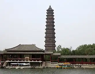 The tallest pre-modern building in China was built for both religious and martial purposes. The Liaodi Pagoda of 1055 AD stands at a height of 84 m (276 ft), and although it served as the crowning pagoda of the Kaiyuan monastery in old Dingzhou, Hebei, it was also used as a military watchtower for Song dynasty soldiers to observe potential Liao dynasty troop movements.
