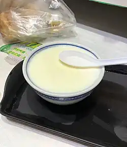 Soybean milk is soybean-based milk. It is a morning beverage, and it has many benefits to human health.[46]