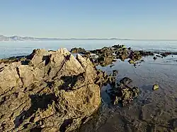 North of Chios Town lies the large suburb of Vrontados (population 4,500), which claims to be the birthplace of Homer.[5] The suburb lies in the Omiroupoli municipality, and its connection to the poet is supported by an archaeological site known traditionally as "Teacher's Rock".[6]