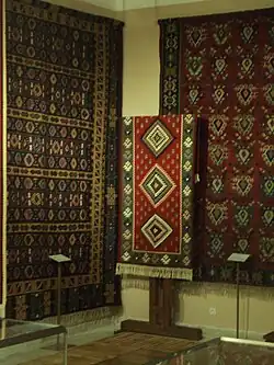 The carpet (kilim) industry remains dominant in the town.[46] Carpets have been crafted according to traditional designs, but in recent years it is up to the customers to decide the pattern of the carpet they have ordered. The production of a single 3 by 4 m (9.8 by 13.1 ft) carpet takes about 50 days; primarily women engage in carpet weaving. Work is entirely manual and all used materials are natural; the primary material is wool, coloured using plant or mineral dyes. The local carpets have been prized at exhibitions in London, Paris, Liège and Brussels.[47] The kilim making of Chiprovtsi was inscribed on the Intangible Cultural Heritage list of UNESCO in 2014.[48] The municipality has also invested in the development of tourism and many private houses have been turned into small family hotels or guesthouses. In 2004, 65 people were engaged in the tourism industry; in the same year, the municipality was visited by 2,350 tourists, of whom were 254 foreigners.[49] In terms of economic indicators, the municipality ranks around the high average: it is 113th of 264 municipalities in Bulgaria by GDP per capita and 67th by Human Development Index.[50]