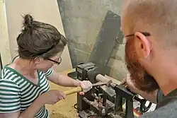 Gouges are used in woodworking and arts. For example, a violin luthier uses gouges to carve the violin, a cabinetmaker may use it for running flutes or paring curves,[5] or an artist may produce a piece of art by cutting some bits out of a sheet of linoleum (see also Linocut).