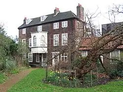 Chiswick Mall is a waterfront street on the north bank of the River Thames in the oldest part of Chiswick near St Nicholas Church. It consists mainly of some thirty "grand houses"[64] from the Georgian and Victorian eras, many of them now listed buildings, overlooking the street on the north side; their gardens are on the other side of the street beside the river.[65] The largest and finest[64] house on the street is Walpole House, a Grade I listed building; part of it is Tudor, but the building now visible is late 17th to early 18th century.[66]