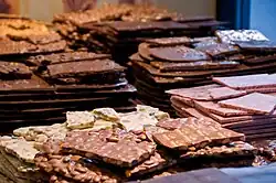 After chocolate has been tempered, it is molded into different shapes, including chocolate bars and chocolate chips.[65]