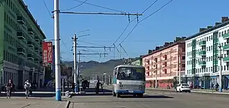 Chongjin is the only city in North Korea other than Pyongyang and Wonsan[28] to operate a tram system. These trams are all locally manufactured. It consists of one line built in two phases, phase 1,6 km (3.7 mi), and phase 2,7 km (4.3 mi).[29] It has a turning loop in Pongchon and Namchongjin, with the depot located in Sabong.