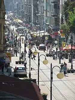 Administratively, Chorzów is in the Silesian Voivodeship since 1999, previously Katowice Voivodeship, and before then, the Silesian Voivodeship. Chorzów is one of the cities of the 2.7 million conurbation – the Katowice urban area and within a greater Katowice-Ostrava metropolitan area with a population of about 5,294,000 people.[3] The population within the city limits is 105,628 as of December 2021.[1]