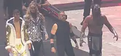 Following their victory, Edge and Christian portrayed themselves as heels, shifting their in-ring personas from borderline goth to a comedic pair of "cool dudes". During this time, their trademark became the "five second pose", where they performed a pose in the ring for five seconds "for the benefit of those with flash photography" to mock, insult, or amuse the fans.[3][23] At SummerSlam on August 27, the Edge and Christian successfully defended the tag team titles in the first ever TLC match against The Hardy Boyz and The Dudley Boyz.[24] At Unforgiven on September 24, Edge and Christian lost the titles against The Hardy Boyz in a steel cage match and were not allowed another title shot. At No Mercy on October 22, Edge and Christian (disguised as Los Conquistadores) defeated The Hardys for the titles. The next night on Raw Is War, The Hardy Boyz dressed as the Los Conquistadores and defeated Edge in a handicap match after Christian was taken out backstage to regain the WWF Tag Team Championship. At Survivor Series on November 19, Edge and Christian teamed with Right to Censor's Bull Buchanan and The Goodfather in a four-on-four Survivor Series elimination match which they lost to The Dudleys and The Hardyz. At Armageddon on December 10, Edge and Christian regained the tag team titles in a fatal four-way match involving The Dudley Boyz, K-Kwik and Road Dogg and The Right to Censor, but they lost them eight days later to The Rock and The Undertaker only to win them back days later on SmackDown! thanks to special guest referee Kurt Angle. At the Royal Rumble on January 21, 2001, Edge and Christian lost the WWF Tag Team Championship to The Dudley Boyz.[25][26] At No Way Out on February 25, Edge and Christian were unsuccessful in regaining the tag team titles,[27] but they eventually recaptured them in the second ever TLC match at WrestleMania X-Seven on April 1.[28][29]
