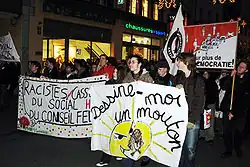 Blocher was a target for the opposition on 18 September 2007, when his appearance at the Comptoir suisse (Swiss fair) in Lausanne was disrupted by protesters.[42]