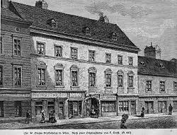 On 15 November 1787, lunching with friends, Gluck suffered a heart arrhythmia and died a few hours later, at the age of 73. Usually, it is mentioned Gluck had several strokes and became paralyzed on his right side. Robl, a family doctor, had doubts as Gluck was still able to play his clavichord or piano in 1783.[59] At a formal commemoration on 8 April 1788, his friend, pupil and successor Salieri conducted Gluck's De profundis, and a Requiem by the Italian composer Niccolò Jommelli. His death opened the way for Mozart at court, according to H. C. Robbins Landon. Gluck was buried in the Matzleinsdorfer Friedhof. On 29 September 1890,[60] his remains were transferred to the Zentralfriedhof; a tomb was erected containing the original plaque.[61][62]