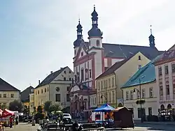 Gluck's earliest known ancestor is his great-grandfather, Simon Gluckh von Rockenzahn, whose name is recorded in the marriage contract (1672) of his son, the forester Johann (Hans) Adam Gluck (c. 1649–1722) and grandfather of Christoph.[2][3] 'Rockenzahn' is believed to be Rokycany, located in the central part of western Bohemia (about 70 km southwest of Prague and 16 km east of Pilsen).[4] The family name Gluck (also spelled Gluckh, Klugh, Kluch, etc.) likely comes from the Czech word for boy (kluk).[2] In its various spellings, it is repeatedly found in the records of Rokycany.[3] Around 1675 Hans Adam moved to Neustadt an der Waldnaab in the service of Prince Ferdinand August von Lobkowitz, who possessed extensive landholdings in Bohemia as well as the county of Störnstein-Neustadt in the Upper Palatinate.[2][3]