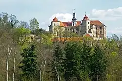 In 1727 Alexander moved with his family to Eisenberg (Jezeří in Horní Jiřetín) to take his final post, head forester to Prince Philipp Hyazinth von Lobkowitz.[22] It is unclear if Christoph was sent to the Jesuit college in Chomutov, 20 km southwest.[23]