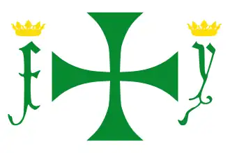 In the April 1492 "Capitulations of Santa Fe", King Ferdinand and Queen Isabella promised Columbus that if he succeeded he would be given the rank of Admiral of the Ocean Sea and appointed Viceroy and Governor of all the new lands he might claim for Spain.[93] He had the right to nominate three persons, from whom the sovereigns would choose one, for any office in the new lands. He would be entitled to one-tenth (diezmo) of all the revenues from the new lands in perpetuity. He also would have the option of buying one-eighth interest in any commercial venture in the new lands, and receive one-eighth (ochavo) of the profits.[94][95][96]