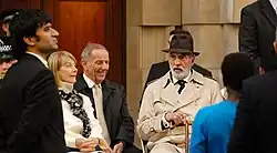 In 2005, Lee played Dr Wonka, father of Willy Wonka, in Tim Burton's film adaptation of the Roald Dahl children's classic Charlie and the Chocolate Factory.[114] He also voiced Pastor Galswells in the animated film Corpse Bride. In 2007, Lee collaborated with Burton again on Sweeney Todd: The Demon Barber of Fleet Street, playing the spirit of Sweeney Todd's victims, called the Gentleman Ghost, alongside Anthony Head, with both singing "The Ballad of Sweeney Todd," its reprises and the Epilogue. These songs were recorded, but eventually cut since Burton felt that the songs were too theatrical for the film. Lee's appearance was completely cut from the film, but Head still had an uncredited one-line cameo.[115] Also in 2007 he played the First High Councillor in The Golden Compass. In late November 2009, Lee narrated the Science Fiction Festival in Trieste, Italy.[116] Also in 2009, Lee starred in Stephen Poliakoff's British period drama Glorious 39, Academy Award-nominated director Danis Tanović's war film Triage, and Duncan Ward's comedy Boogie Woogie.[117]