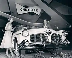 1955 Imperial car model, in its first year as a separate make, apart from Chrysler, shown on display at January 1955 Chicago Auto Show