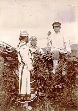 There are two rival schools of thought on the origin of the Chuvash people. One is that they originated from a mixing between the Sabir tribes and the Finno-Ugrians.[39] The other is that they have descendant from Volga Bulgars. Throughout history, they have experienced significant infusion and influence, not only from Russian and other Turkic peoples but also from neighboring Uralic tribes with whom they were persistently and mistakenly identified for centuries.[40]