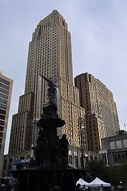 Cincinnati is home to numerous structures that are noteworthy due to their architectural characteristics or historic associations, including the aforementioned Carew Tower, the Scripps Center, the Ingalls Building, Cincinnati Union Terminal, and the Isaac M. Wise Temple.[72] Queen City Square opened in January 2011. The building is the tallest in Cincinnati and the third tallest in Ohio, reaching a height of 665 feet (203 m).[73]
