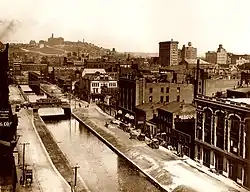 Construction on the Miami and Erie Canal began on July 21, 1825, when it was called the Miami Canal, related to its origin at the Great Miami River. The first section of the canal was opened for business in 1827. In 1827, the canal connected Cincinnati to nearby Middletown; by 1840, it had reached Toledo.[26]: 5–6 Railroads were the next major form of commercial transportation to come to Cincinnati. In 1836, the Little Miami Railroad was chartered.[27]: 18 Construction began soon after, to connect Cincinnati with the Mad River and Lake Erie Railroad, and provide access to the ports of the Sandusky Bay on Lake Erie.[26]: 7