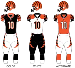 - ^ "Bengals Release Uniform Schedule for 2023 Season". Bengals.com. NFL Enterprises, LLC. August 9, 2023. Retrieved August 10, 2023.