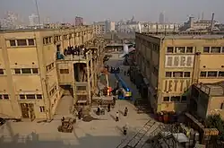 East German cinema initially profited from the fact that much of the country's film infrastructure, notably the former UFA studios, lay in the Soviet occupation zone which enabled film production to get off the ground more quickly than in the Western sectors.[41] The authorities in the Soviet Zone were keen to re-establish the film industry in their sector and an order was issued to re-open cinemas in Berlin in May 1945 within three weeks of German capitulation.[42] The film production company DEFA was founded on 17 May 1946, and took control of the film production facilities in the Soviet Zone which had been confiscated by order of the Soviet Military Administration in Germany in October 1945.[43] A joint-stock company on paper, the majority interest in DEFA was actually held by the Socialist Unity Party of Germany (SED) which became the ruling party of the German Democratic Republic (GDR) after 1949, formally placing DEFA as the state-owned monopoly for film production in East Germany.[44] A sister "company", Progress Film, had also been established as a similar monopoly for domestic film distribution, its principal "competition" being Sovexportfilm, which handled distribution of Soviet films.[45]