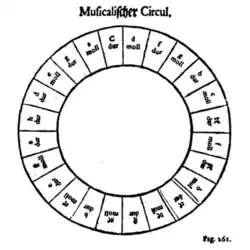 A circle of fifths diagram was independently created by German composer and theorist Johann David Heinichen in his Neu erfundene und gründliche Anweisung (1711),[8] which he called the "Musical Circle" (German: Musicalischer Circul).[9][10] This was also published in his Der General-Bass in der Composition (1728).