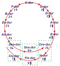 {{cite book}}: CS1 maint: location missing publisher (link) - ^ Whittall, A. (2002, p. 259) "Circle of Fifths", article in Latham, E. (ed.) The Oxford Companion to Music. Oxford University Press.