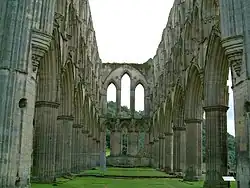 In Yorkshire, Rievaulx Abbey was founded from Clairvaux in 1131, on a small, isolated property donated by Walter Espec, with the support of Thurstan, Archbishop of York. By 1143, three hundred monks had entered Rievaulx, including the famous St Ælred. It was from Rievaulx that a foundation was made at Melrose, which became the earliest Cistercian monastery in Scotland. Located in Roxburghshire, it was built in 1136 by King David I of Scotland, and completed in less than ten years.[42] Another important offshoot of Rievaulx was Revesby Abbey in Lincolnshire.[43]