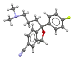![]() (R)-(−)-citalopram (top), (S)-(+)-citalopram (bottom) | |