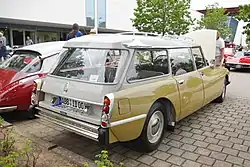 The ID shared the DS's body but was less powerful and luxurious. Although it shared the engine capacity of the DS engine (at this stage 1,911 cc), the ID provided a maximum power output of only 51 kW (69 hp) compared to the 56 kW (75 hp) claimed for the DS19.[43] Power outputs were further differentiated in 1961 when the DS19 acquired a Weber-32 twin bodied carburettor, and the increasing availability of higher octane fuel enabled the manufacturer to increase the compression ratio from 7.5:1 to 8.5:1.[43] A new DS19 now came with a promised 62 kW (83 hp).[43] The ID19 was also more traditional mechanically: it had no power steering and had conventional transmission and clutch instead of the DS's hydraulically controlled set-up. Initially, the basic ID19 was sold on the French market with a price saving of more than 25% against the DS, although the differential was reduced at the end of 1961 when the manufacturer withdrew the entry-level ID19 "Normale".[43] A station wagon variant, the ID Break, was introduced in 1958.