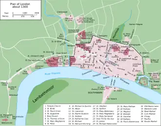 Map of London in about 1300