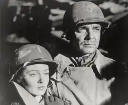 Gable was acclaimed for his performance in The Hucksters (1947), a satire of post-war Madison Avenue corruption and immorality, which co-starred Deborah Kerr and Ava Gardner. The film was popular with audiences, placing 11th at the box office,[80] but both Variety and The New York Times reviewed it as a sanitized version of the novel with script issues, that was heavy on Gable screentime, who struggled in the role.[81][82] Gable followed this up with Homecoming (1948), where he played a married doctor enlisting in World War II and meeting Lana Turner's army surgical nurse character with a romance unfolding in flashbacks.[83] After that he made the war film Command Decision (1948), a psychological drama with Walter Pidgeon, Van Johnson, Brian Donlevy, and John Hodiak. It was a hit with audiences, but it lost MGM money due to the high cost of the all-star cast.[79][83] Variety said, "[Gable's] is a believable delivery, interpreting the brigadier-general who must send his men out to almost certain death with an understanding that bespeaks his sympathy with the soldier... ".[84]