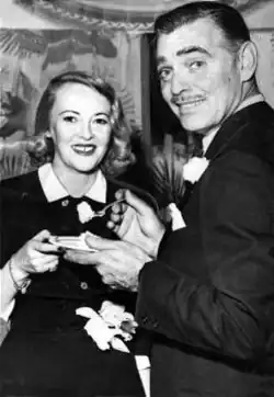 According to Lennie Bluett, an extra in the film, Gable almost walked off the set when he discovered the studio facilities were segregated and signage posted "White" and "Colored".[51] Gable phoned the film's director Victor Fleming and told him, "If you don't get those signs down, you won't get your Rhett Butler." The signs were then taken down.[52] Gable tried to boycott the Gone with the Wind premiere in segregated Atlanta, because African American actors Hattie McDaniel and Butterfly McQueen were not permitted to attend. He reportedly only went after McDaniel pleaded with him to go.[53] They appeared in several more films, remaining life-long friends and he always attended her Hollywood parties.[54]