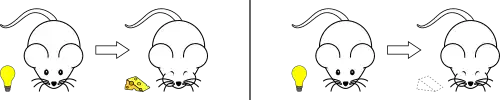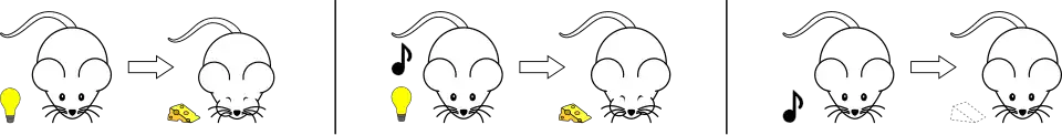 Pavlovian-instrumental transfer is a phenomenon that occurs when a conditioned stimulus (CS, also known as a "cue") that has been associated with rewarding or aversive stimuli via classical conditioning alters motivational salience and operant behavior.[43][44][45][46] In a typical experiment, a rat is presented with sound-food pairings (classical conditioning). Separately, the rat learns to press a lever to get food (operant conditioning). Test sessions now show that the rat presses the lever faster in the presence of the sound than in silence, although the sound has never been associated with lever pressing.