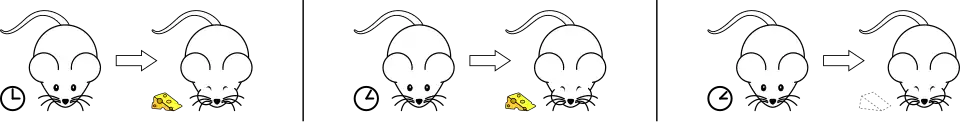 The example below shows the temporal conditioning, as US such as food to a hungry mouse is simply delivered on a regular time schedule such as every thirty seconds. After sufficient exposure the mouse will begin to salivate just before the food delivery. This then makes it temporal conditioning as it would appear that the mouse is conditioned to the passage of time.