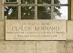 In 1834, at the age of twenty-one, he went to Paris to present this play to critic Saint-Marc Girardin, but was dissuaded from adopting literature as a profession. Girardin urged him to take up the study of medicine instead.[4] Bernard followed his advice, later becoming an interne at the Hôtel-Dieu de Paris. There, he met physiologist François Magendie, who served as physician at the hospital. Bernard became preparateur (lab assistant) at the Collège de France in 1841.[8]