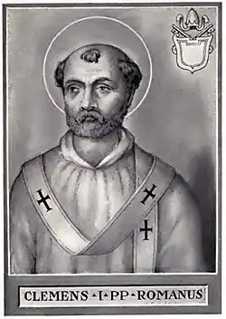 Clement of Rome (Latin: Clemens Romanus; Ancient Greek: Κλήμης Ῥώμης, romanized: Klēmēs Rōmēs; died c. 100), also known as Pope Clement I, was the Bishop of Rome in the late first century. He is considered to be the first of the Apostolic Fathers of the Church.[2]