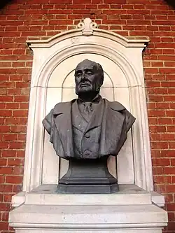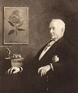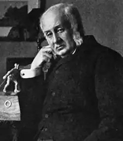 Markham was awarded honorary degrees from the University of Cambridge and University of Leeds. In conferring this latter degree, the Chancellor referred to Markham as "a veteran in the service of mankind", and recalled that he had been "for sixty years the inspiration of English geographical science."[93] However, Markham did not altogether avoid controversy. In 1912, when Roald Amundsen, conqueror of the South Pole, was invited by RGS president Leonard Darwin to dine with the Society, Markham resigned his council seat in protest.[94]