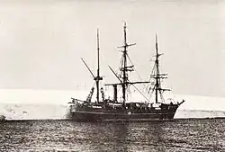 In a letter written many years later, Markham said that on the assumption of the presidency he had felt the need, after the dispute over women, to "restore the Society's good name" by the adoption of some great enterprise. He chose Antarctic exploration as the basis for this mission;[64] there had been no significant Antarctic exploration by any country since Sir James Clark Ross's expedition fifty years previously.[65] A new impetus was provided through a lecture given to the RGS in 1893, by the oceanographer John Murray, calling for "an expedition to resolve the outstanding questions still posed in the south."[66] In response to Murray the RGS and the Royal Society formed a joint committee, to campaign for a British Antarctic expedition.[67]