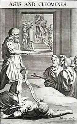 ![]() Kings Agis and Cleomenes, late 17th century engraving. | |