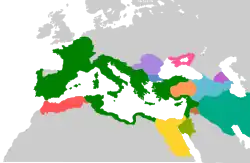 The Roman Republic (green) and Ptolemaic Egypt (yellow) in 40 BC