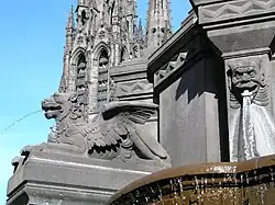Along with its highly distinctive black lava stone Gothic styled Cathedral, Clermont-Ferrand's other famous sites include the public square Place de Jaude, in which stands a grand statue of Vercingetorix astride a warhorse and brandishing a sword. The inscription reads in French: J'ai pris les armes pour la liberté de tous, lit. 'I took up arms for the liberty of all'). This statue was sculpted by Frédéric Bartholdi, who also created the Statue of Liberty.