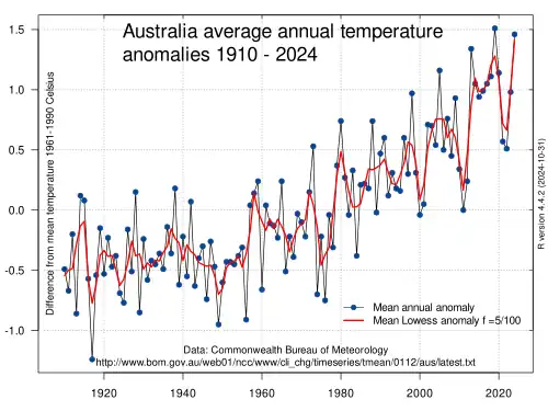 - ^ "State of the Climate 2024, Australia's changing climate, Temperature". www.bom.gov.au. Bureau of Meteorology. Retrieved 26 December 2024.