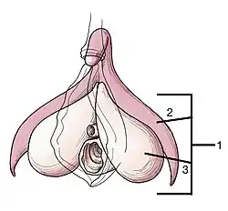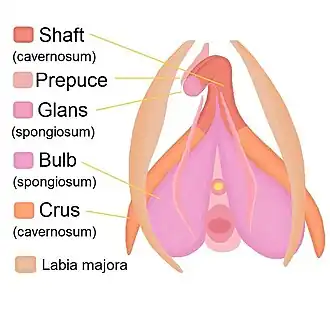 ![]() Diagram of clitoris. Body (labeled as "shaft") at the top. | |