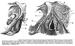 | Vein | Superficial dorsal veins of clitoris, deep dorsal vein of clitoris, vein of bulb, internal pudendal veins |