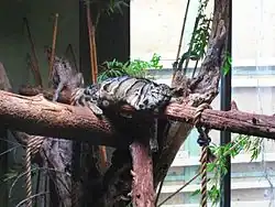 In March 2011, two breeding females at the Nashville Zoo at Grassmere gave birth to three cubs, which were raised by zookeepers. Each cub weighed 0.23 kg (0.5 lb).[66] In June 2011, two cubs were born at the Point Defiance Zoo & Aquarium. The breeding pair was brought from the Khao Kheow Open Zoo in Thailand in an ongoing education and research exchange program.[67] Four cubs were born at Nashville Zoo in 2012.[68] In May 2015, four cubs were born in Point Defiance Zoo & Aquarium.[69]