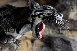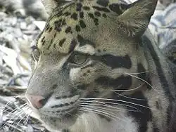 Felis nebulosa was proposed by Edward Griffith in 1821 who first described a skin of a clouded leopard that was brought alive from Guangdong in China to the menagerie at Exeter Exchange in London.[3] Felis macrosceloides proposed by Brian Houghton Hodgson in 1841 was a clouded leopard specimen from Nepal.[4][5] Felis brachyura proposed by Robert Swinhoe in 1862 was a clouded leopard skin from Taiwan.[6] The generic name Neofelis was proposed by John Edward Gray in 1867 who subordinated all three to this genus.[7] At present, N. nebulosa is considered a monotypic species due to lack of evidence for subspeciation.[8]