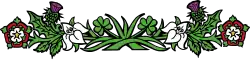 | Compartment | The entire coat of arms rests on the compartment, which is made up of the floral emblems of the founding nations.[17] The Tudor rose is the floral badge of England and Wales, combining the White Rose of York and the Red Rose of Lancaster.[30] The thistle and shamrock are the symbols of Scotland and Ireland, respectively, while the fleur-de-lis has been the royal symbol of France since the 12th century.[30][80] |