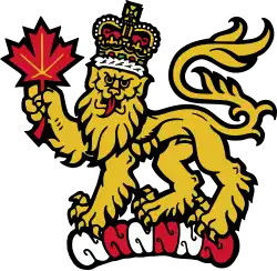 | Crest | Upon a royal helmet, a lion passant guardant or imperially crowned proper and holding in the dexter paw a maple leaf gules. |
