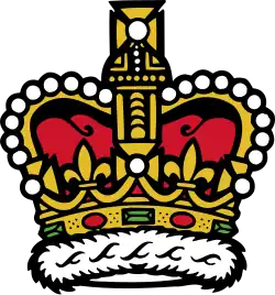 | Crown | The coat of arms are surmounted by a rendition of St. Edward's Crown, which has been used in the coronations of Canada's monarchs. This element represents Canada's status as a constitutional monarchy headed by a sovereign king or queen.[5] This style of crown was that preferred by Queen Elizabeth II, and was modernized in 1957 from the 1921 design, which used the Tudor crown.[17][26] | ![]() |
