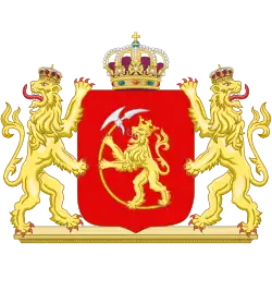1. ^ "The style of the lion in the Royal standard has, however, not been changed. The 1905 version is still in use. The style and design of the lion on the Norwegian coat of arms were changed from the 1905 version in 1937, and the result is two very diverging drawings. The whole drawing is strictly flat or 'stylized'. This redrawing was the work of state archivist Hallvard Trætteberg - his point of view on heraldry strongly influenced public heraldry since the early 1930s (see for instance the county flags). There have been minor changes to the lion in the coat of arms - most recently in 1994. The Royal Ministry of Foreign Affairs produced some very attractive brochures on the flag and arms last year - also mainly in Norwegian but with nice pictures" (Jan Oskar Engene, 24 November 1995) crwflags.com