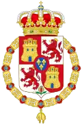 | Shield | Quarterly: Castile, León, Aragon, and Navarre; enté en point: Granada; inescutcheon: House of Bourbon |