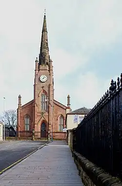 Coatbridge (Scots: Cotbrig or Coatbrig, locally /ˌkoʊtˈbrɪdʒ/[4]) is a town in North Lanarkshire, Scotland, about 8+1⁄2 miles (14 kilometres) east of Glasgow city centre, set in the central Lowlands. Along with neighbouring town Airdrie, Coatbridge forms the area known as the Monklands (population approximately 90,000 including outlying settlements),[5] often considered to be part of the Greater Glasgow urban area – although officially they have not been included in population figures since 2016 due to small gaps between the Monklands and Glasgow built-up areas.